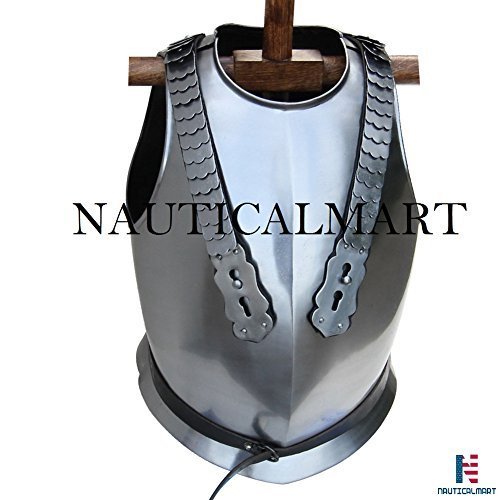 This type of cuirass was worn by regiments known as Cuirassiers. Cuirassiers were generally the senior branch of the mounted portion of an army, retaining their status as heavy cavalry"big men on big horses". Their value as a heavy striking force during the Napoleonic Wars ensured that the French, Russian and Prussian armies continued to use cuirassier regiments throughout the 19th century. This armor was constructed of 18 gauge stee1 and comes equipped with a leather adjustable waist strap and two decorative scaled shoulder straps that adhere to the front. This entire set has been hand forged and polished. Today the French army still maintains one historic cuirassier regiment as an armored unit that still uses this type of cuirass. This set is great for TV, Movie, Theater, or Re-enactments. Manufactured sold by NauticalMart Inc.