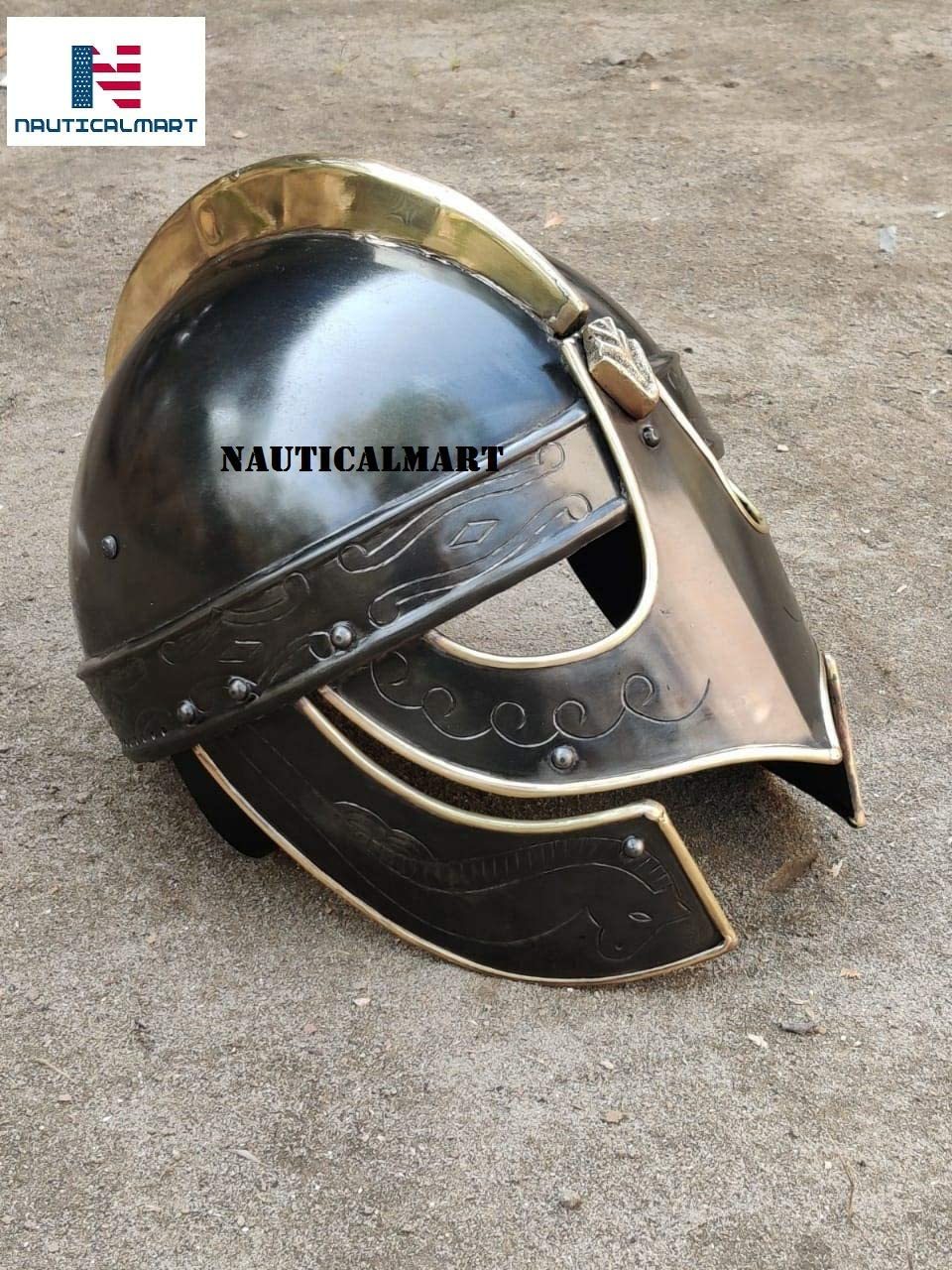 The helmet is a perfect outfit of Medieval War Time. It is perfect for adding to your collection, to wear to the next ren fair, Larp Re-enactment Renaissance Party and Cosplay, or to simply impress your friends .