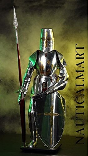 Authentic Knight Suit Of Armour lance shield. Made of 18g steel with beautifully finish. Fully Wearable and Adult size. Great for Halloween, fancy dress, theatrical props, and historical reenactments. Manufactured sold by NaiticalMart Inc