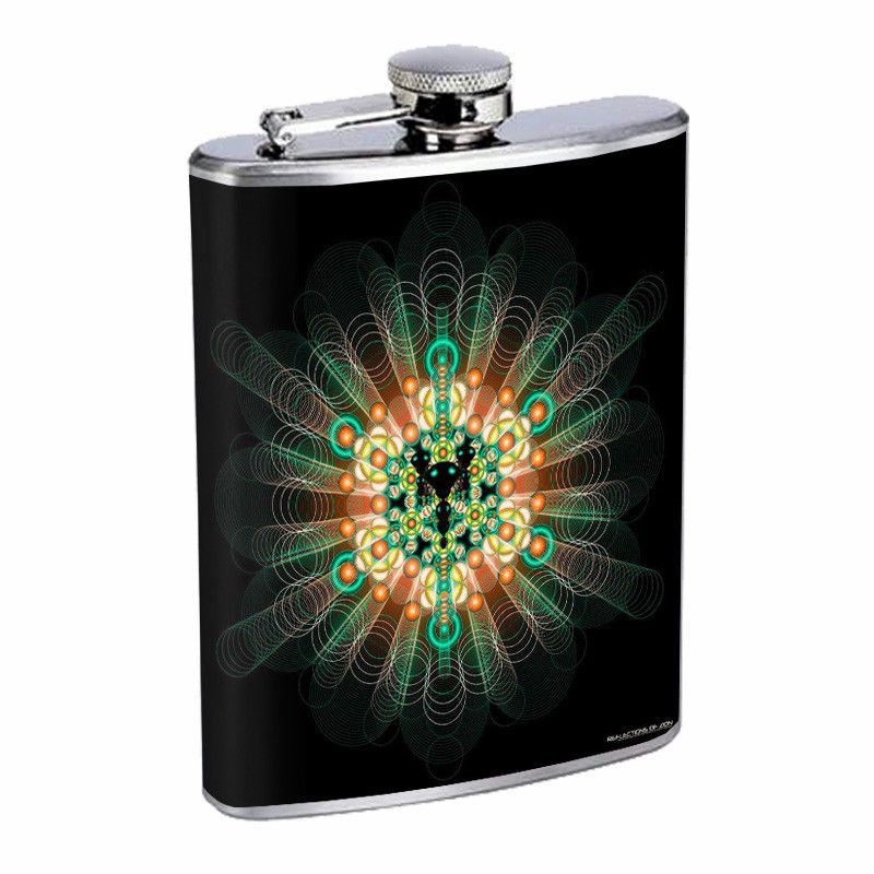 Fractal Circle Retro Em1 Flask 8oz Stainless Steel Hip Drinking Whiskey