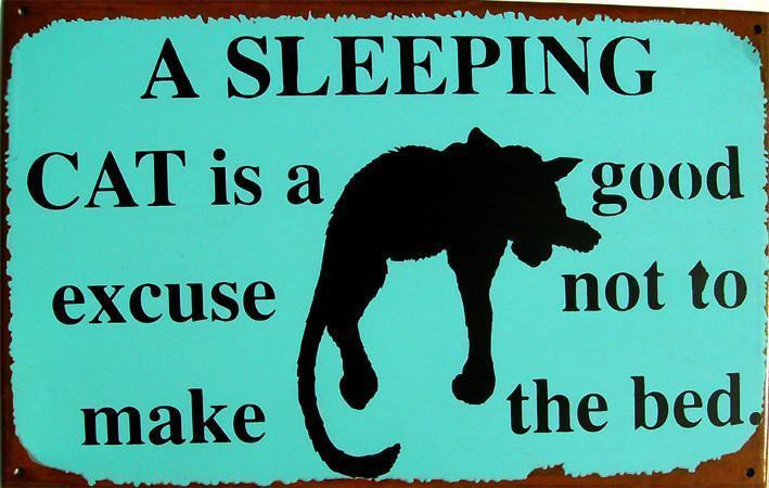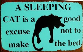 Sleeping Cat on Bed Don't Make the Bed Vintage Style Metal Sign