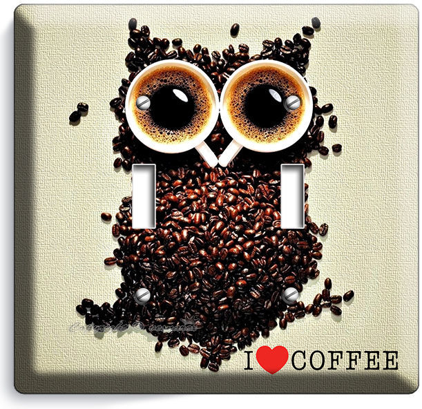I LOVE HEART COFFEE BEANS OWL DOUBLE LIGHT SWITCH WALL PLATE COVER HOUSE DECOR