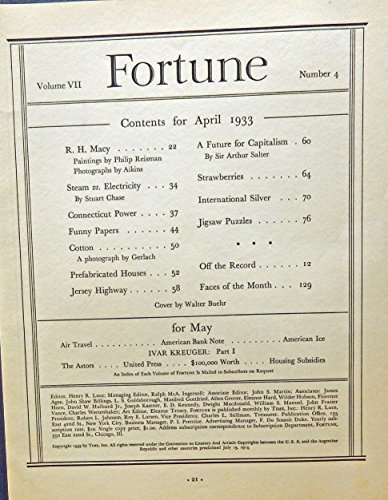 Fortune Magazine Index. volume VII number 4, contents page for April 1933