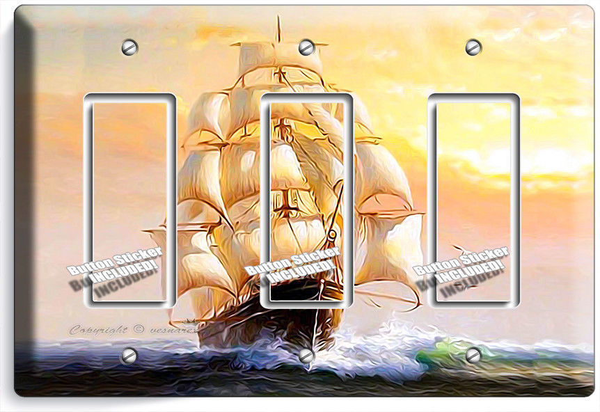 SAILING SHIP SAILBOAT OCEAN LIGHT TRIPLE GFCI SWITCH WALL PLATE COVER ROOM DECOR