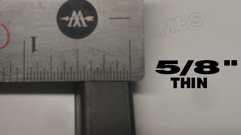 THIN (5/8') FRAME ALLOWS ROOM FOR REGISTRATION STICKERS