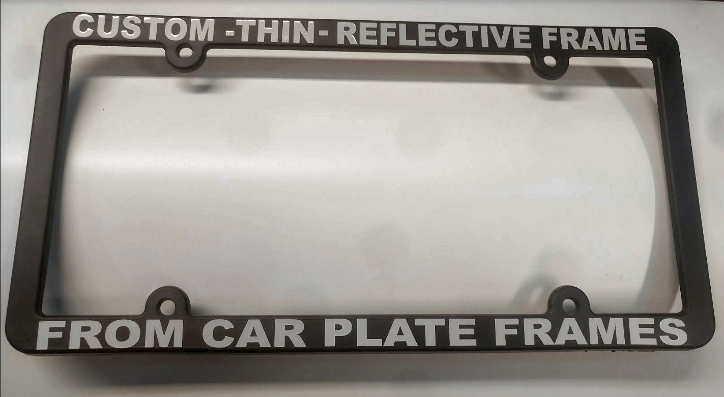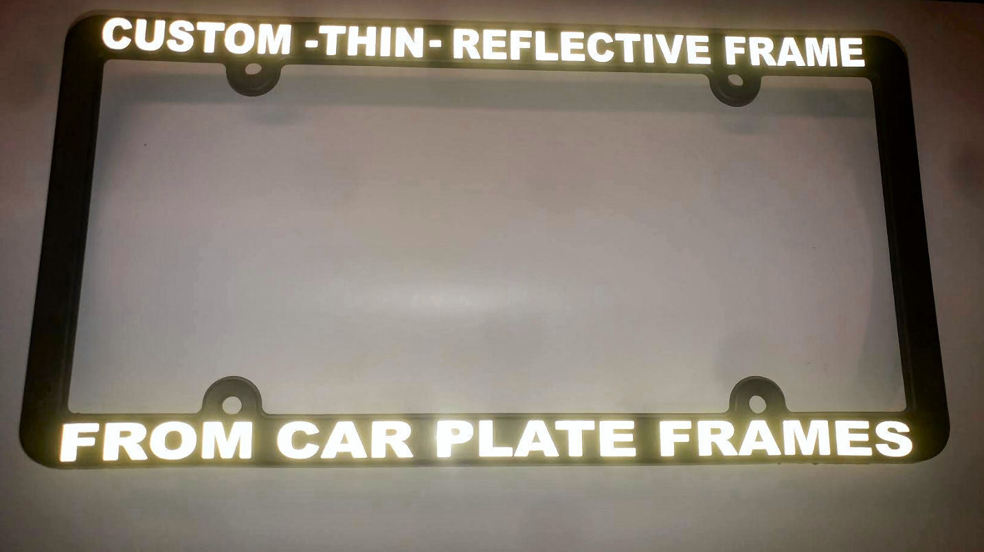 THIN REFLECTIVE CUSTOM MADE PERSONALIZED BLACK WHITE LETTERS License Plate Frame