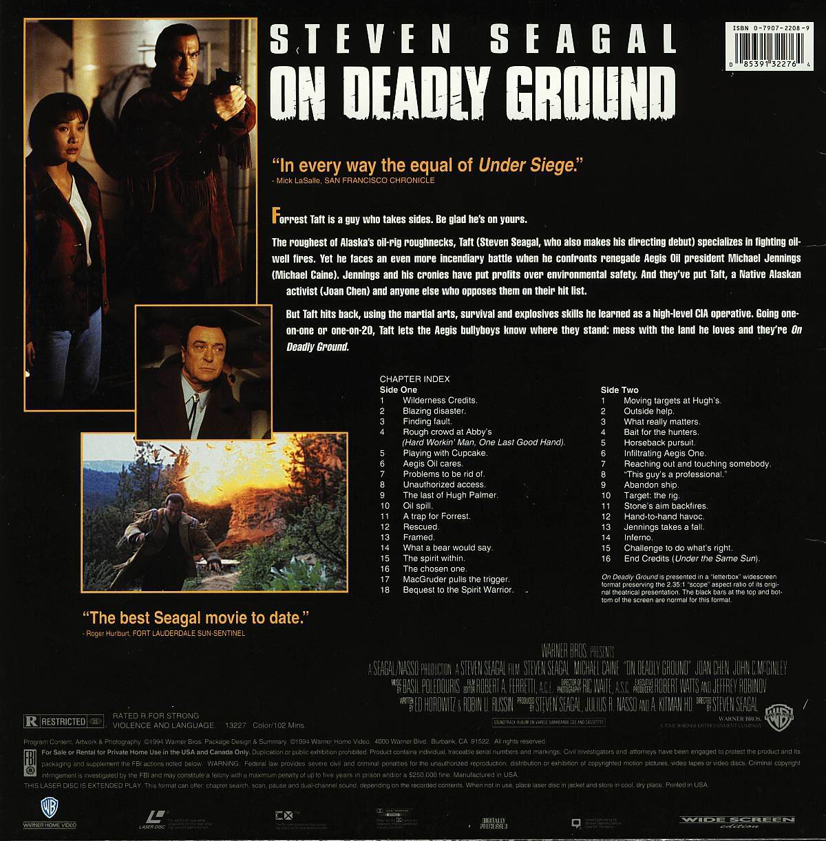 This is a previously viewed LASERDISC of the rare action drama classic ON DEADLY GROUND staring: