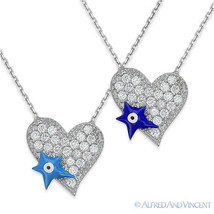 Evil Eye Heart Pendant Turkish Nazar Greek Jewish Hamsa Sterling Silver Necklace