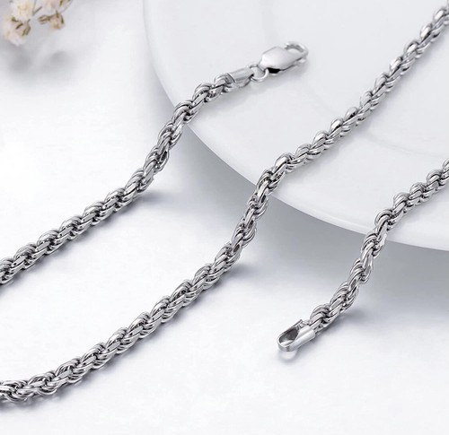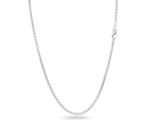 The featured Italian-made chain is made up of Boston-link chains cast in .925 sterling silver one plated with rhodium the other with black rhodium twisted together to create an elegant rope design then finished with a spring-ring clasp for secure wear.