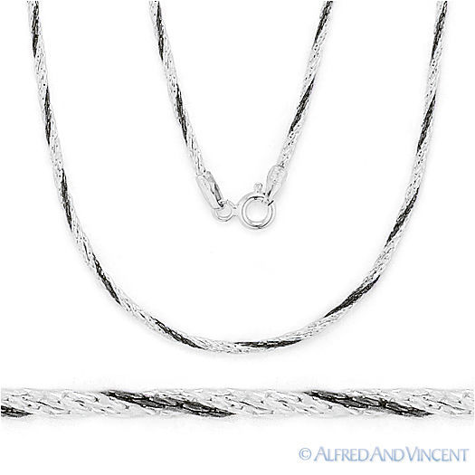 1.2mm Boston / Cardano Twist-Rope Chain Necklace in .925 Sterling Silver w/ Black Rhodium Accents