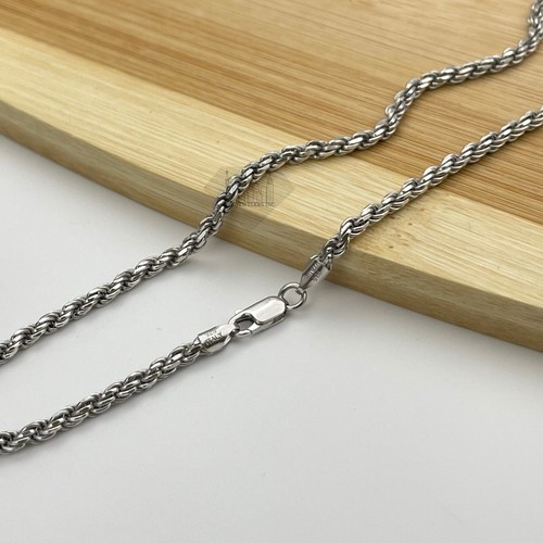 Sterling Silver Black Rhodium Twist-Rope Boston Micro-Link Chain Necklace Italy