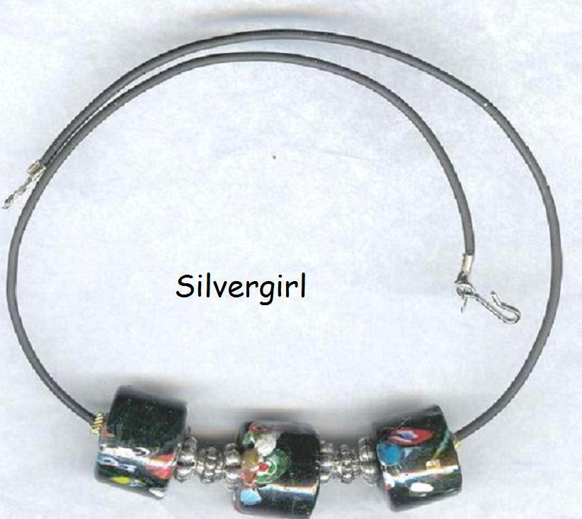 1/2" choker made with 3 large bold black multi coloured lamp work or trade