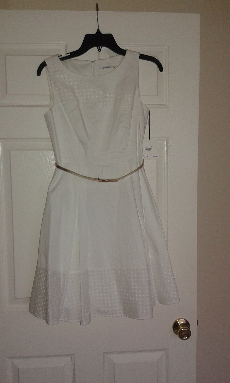 Calvin Klein New Womens White Lace Belted Fit & Flare Dress Petites 6P