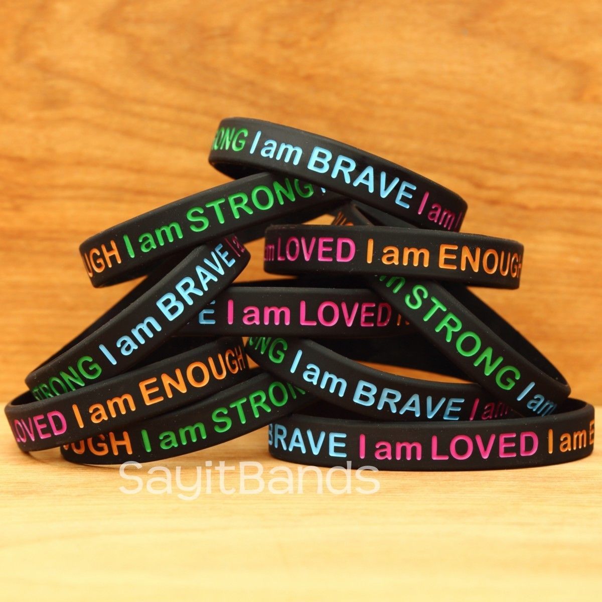 a statement and take a stand with our "I am" wristbands. They feature