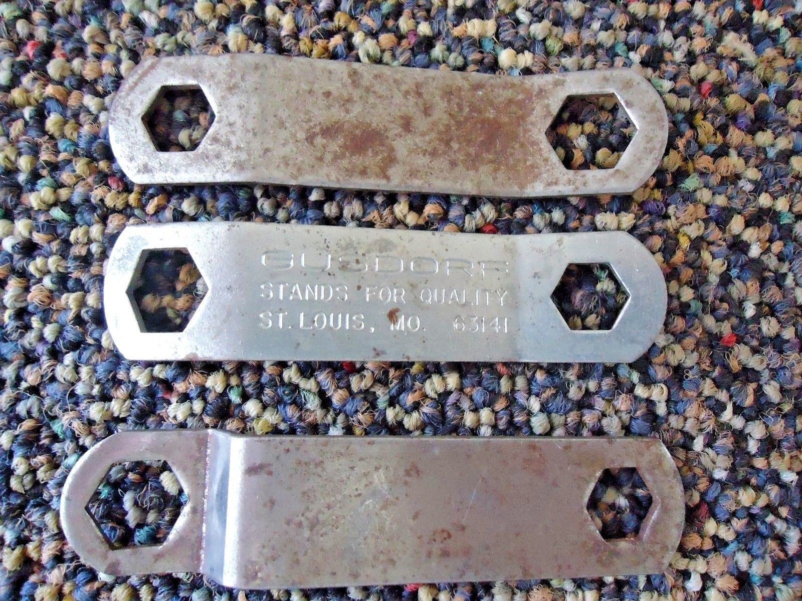 Here is a Vintage Lot Of 3 Small Multi Use Bicycle Type Of Wrenches,1,Gusdorf,2,Other " GREAT COLLECTIBLE LOT ".This is a must for any collector,or decorator wanting that vintage retro look.If you have any concerns or questions about this item(s) please ask before bidding / purchasing because this item(s) is being SOLD AS IS.Thank You.-(PC15)