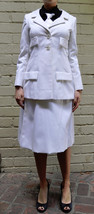 Cardinali White Two Button Blazer Skirt Black Blouse Tie Set Size 6 Italy