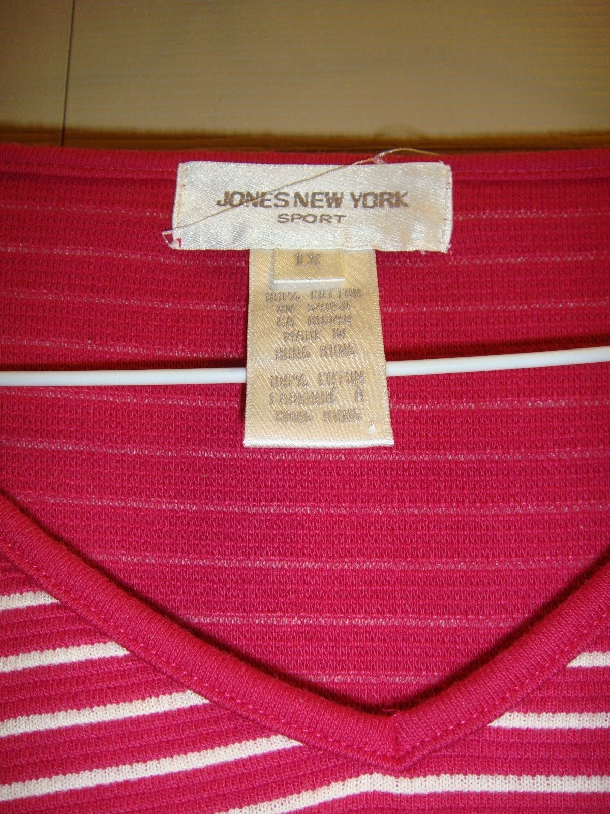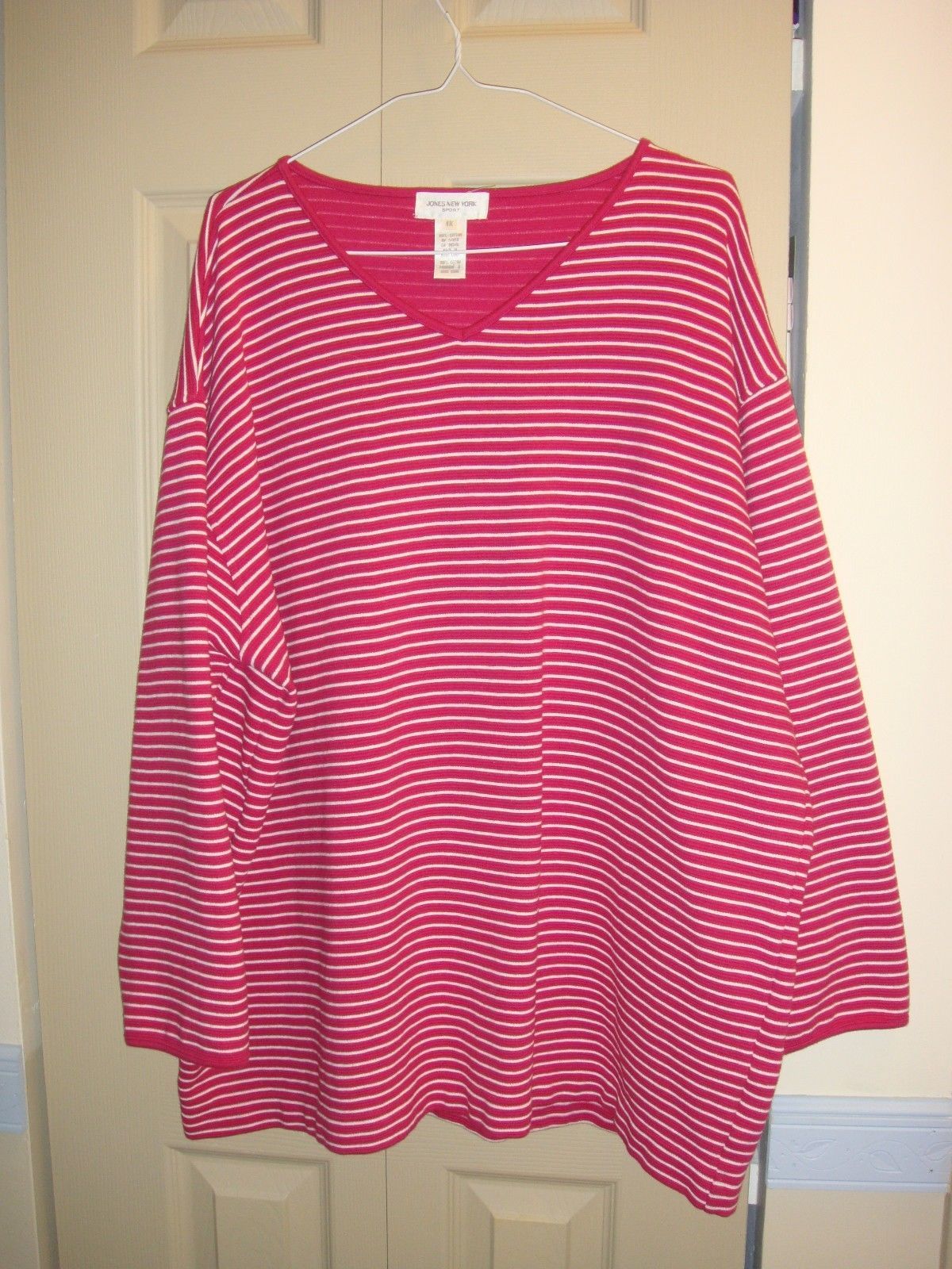 Jones New York Sport Bright Pink White Stripe Long Sleeve Top, Size 1X, Very Gently Used.