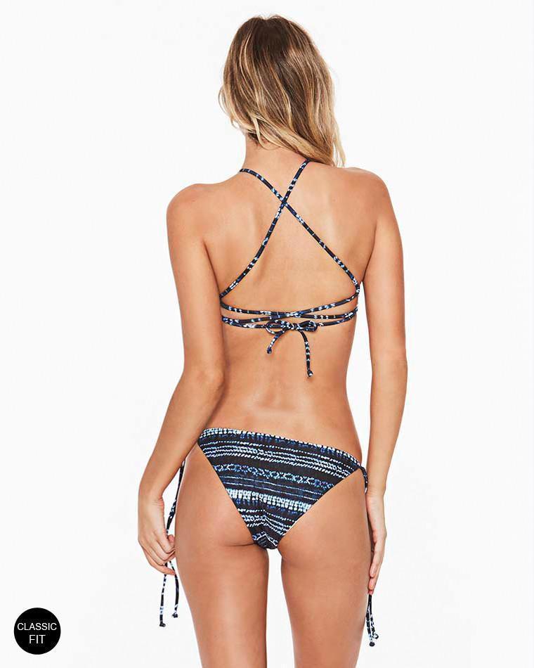Keep it classic in the Midnight Caravan Lily Bottom! Flattering for all body types, this indigo dye stripe bottom features self-tie sides at the hips for the perfect amount of adjustability. The classic coverage reverses to solid white for twice the styling options!