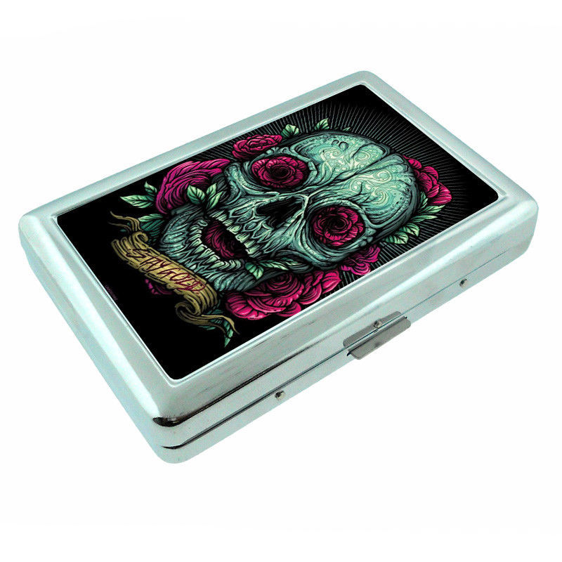 Flower Skeleton Gold Em1 Silver Metal Cigarette Case RFID Protection Wallet