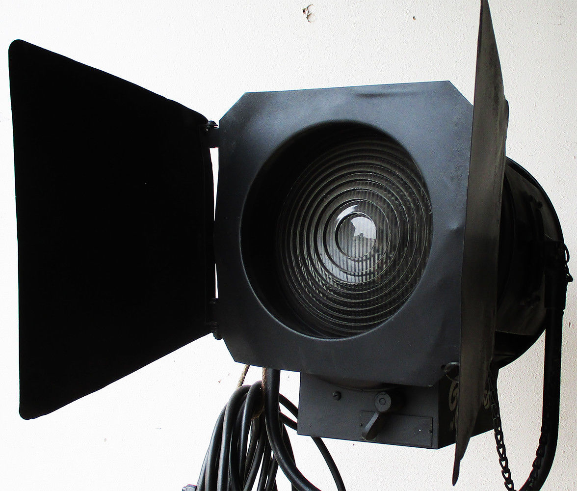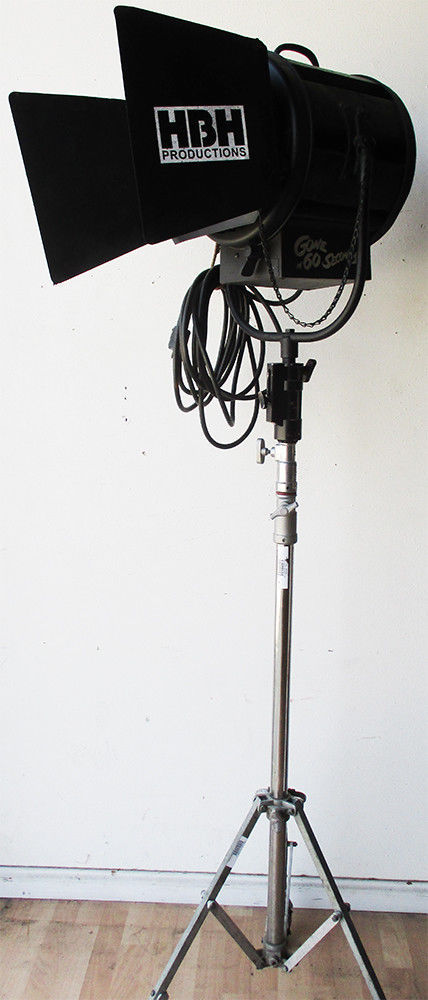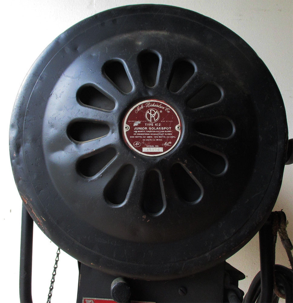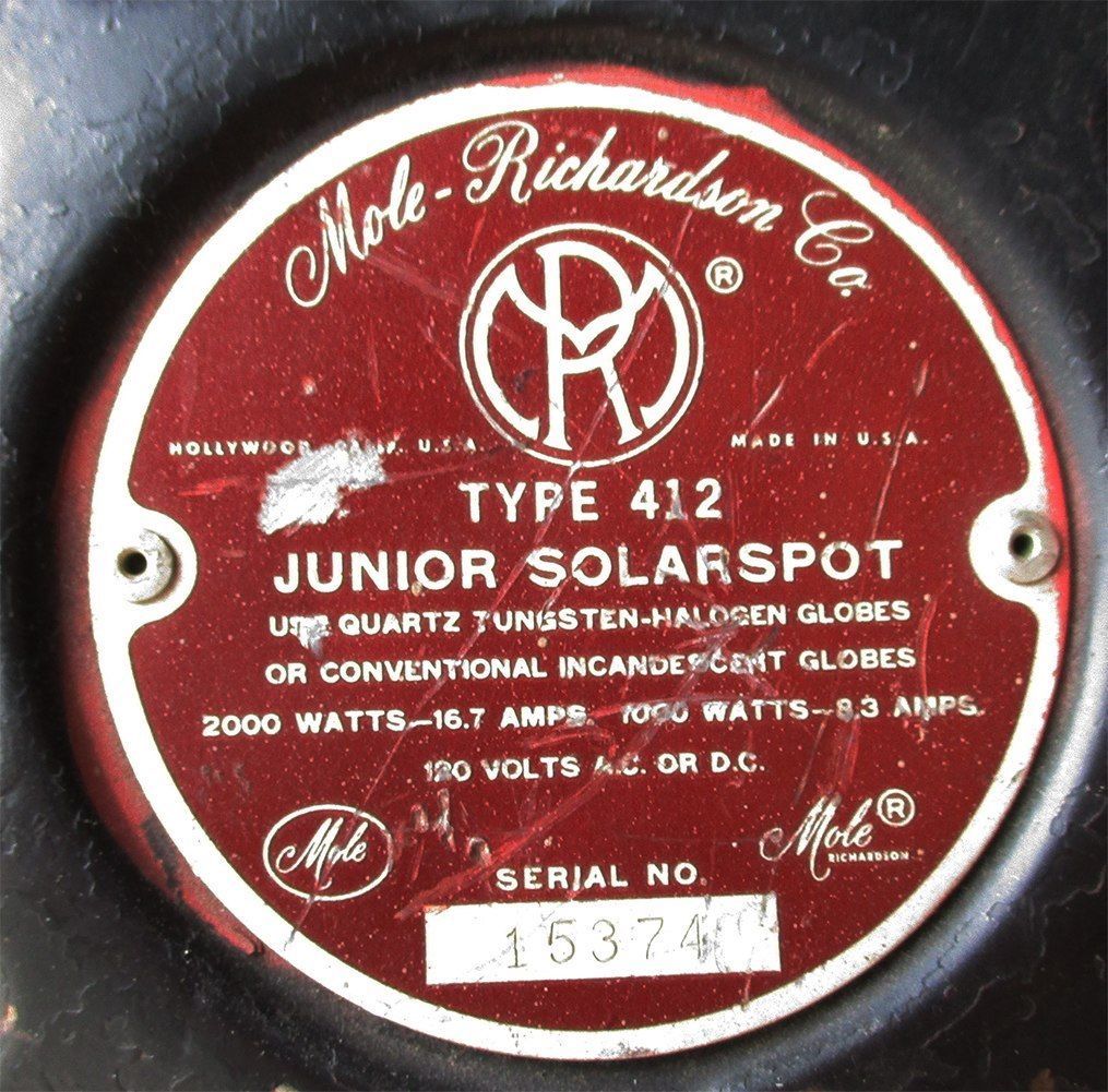 An original Mole Richardson Junior Solarspot Type 413 serial # 15374 circa 1940's 2K movie lite with the original adjustable stand s in the filming of Gone in 60 Seconds". Limited Inventory. Has bee restored for 110 volts to accomadate any medium base light. The light can be adjusted from a flood to a spot light. Highly collectible. Shippable by UPS