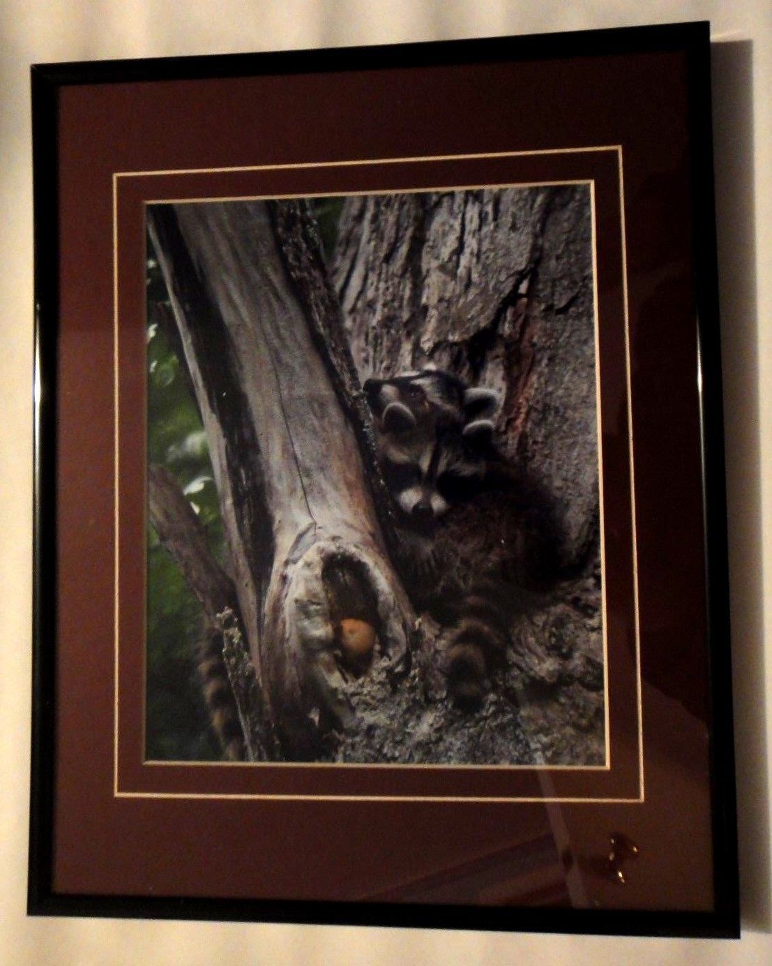 Adorable and cute baby raccoon 8x10 photo matted and framed in an 11x14 frame