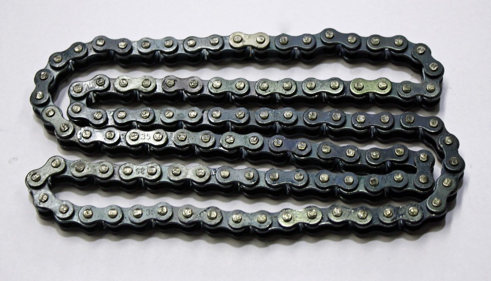 This chain measures 34" each with 68 pins/rollers. Please measure and verify the actual # of links or the overall length of your drive chain before ordering. If your chain is longer or shorter and not in our stock contact us, we will make one especially for your needs.