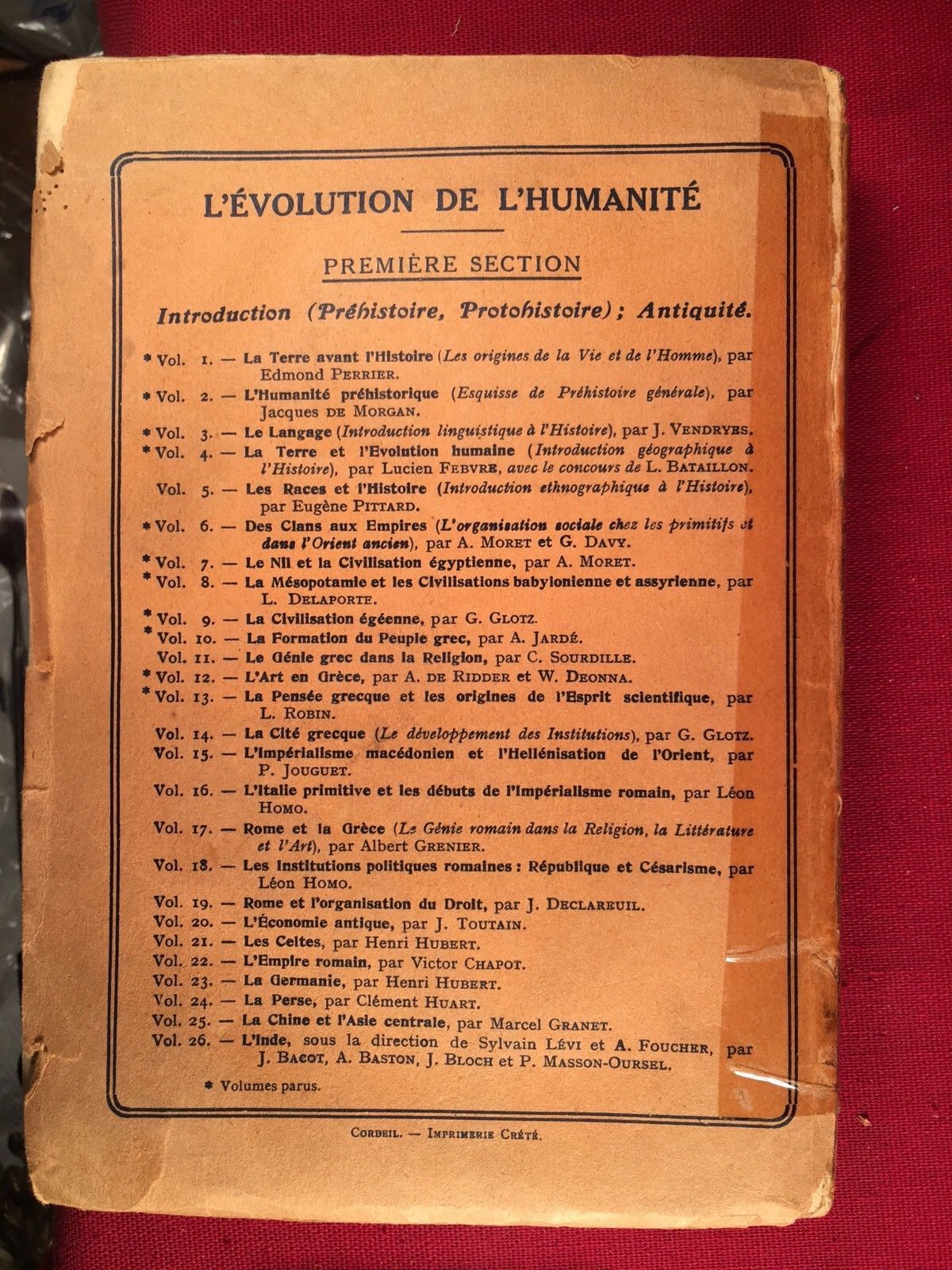 This volume is number 13 of the 26 volumes (listed on the rear panel) in the series 'Bibliotheque de Synthese Historique: L'Evolution de l'Humanite', edited by Heri Berr, who also provides the book with an introduction.