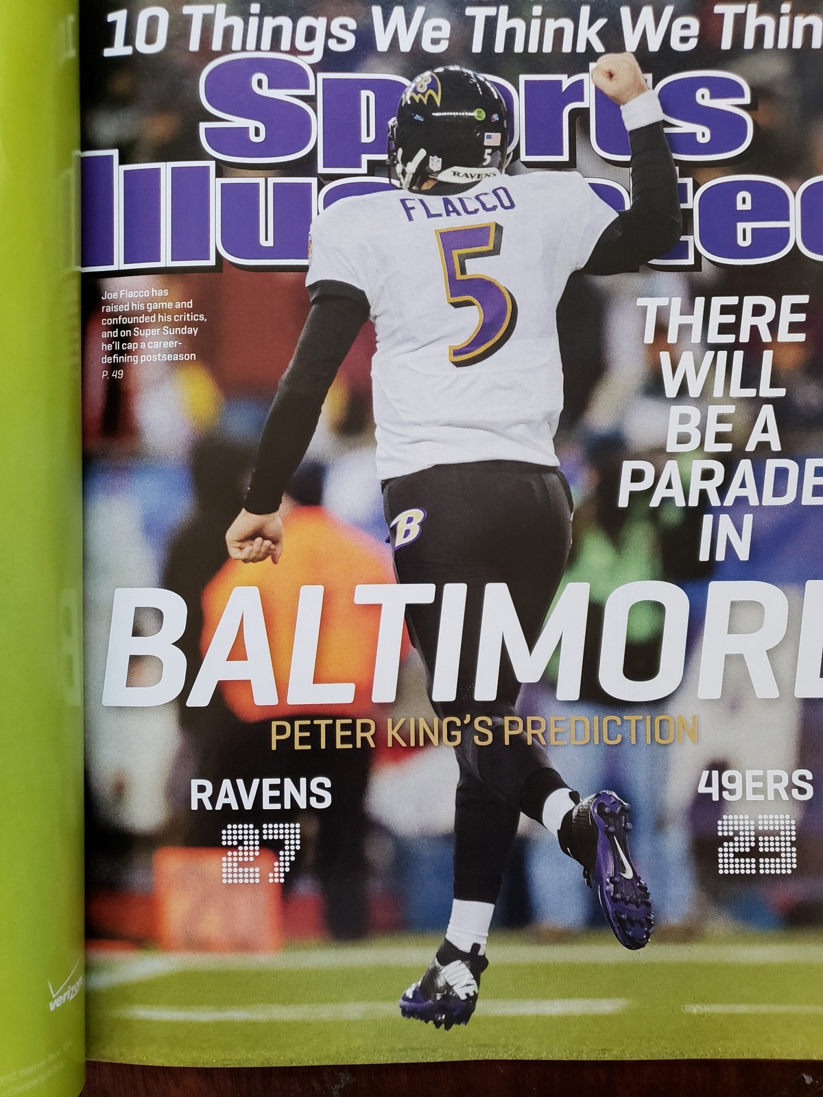 On cover for this January 28, 2013 Issue of Sports Illustrated: February 3 HarBowl Sunday 49ers vs Ravens. Brothers JIM and JOHN HARBAUGH face off in a fiery showdown in New Orleans.