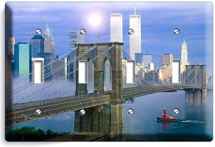 NYC NEW YORK CITY BROOKLYN BRIDGE TWIN TOWERS 3 GANG LIGHT SWITCH PLATE HD DECOR