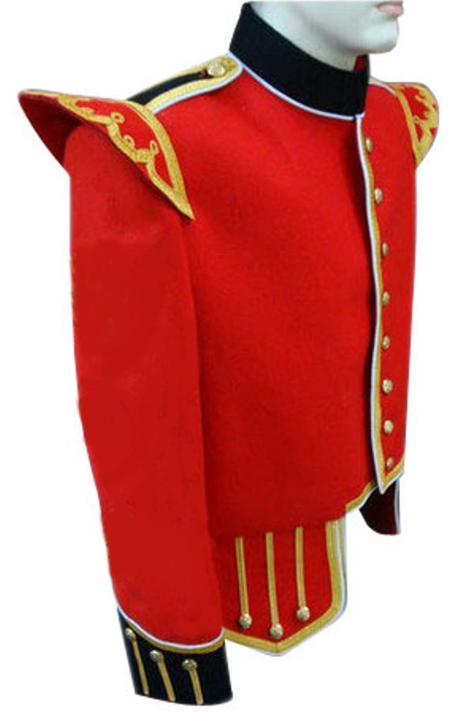 Piper or Drummer Doublet Red Blazer Wool With Gold Braid And White Piping