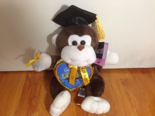 graduazione scimmia peluche peluche con tappo DIPLOMA 25.4Cm marrone scuro