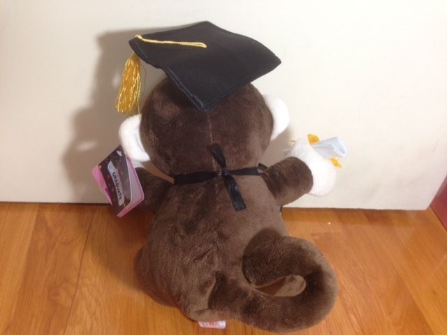 graduazione scimmia peluche peluche con tappo & DIPLOMA 25.4Cm marrone scuro