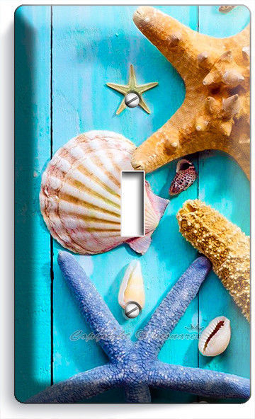 RUSTIC TURQUOISE WOOD NAUTICAL SEA SHELL STARFISH 1 GANG LIGHT SWITCH WALL PLATE