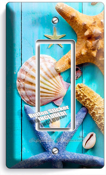 RUSTIC TURQUOISE WOOD NAUTICAL SEA SHELL STARFISH 1 GANG GFCI LIGHT SWITCH PLATE