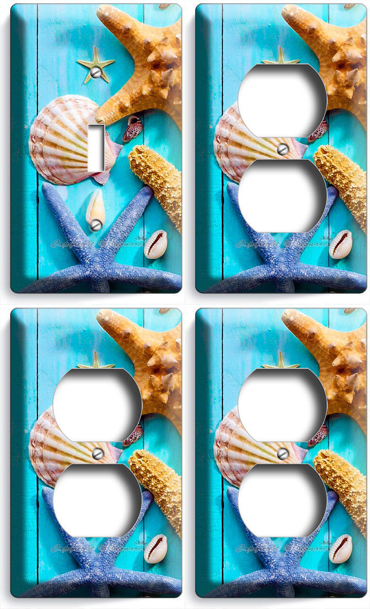 RUSTIC TURQUOISE WOOD NAUTICAL SEA SHELL STARFISH 1 LIGHT SWITCH 3 OUTLET PLATES