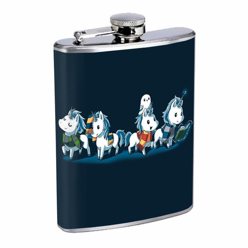 Magic Houses Unicorns Em1 Flask 8oz Stainless Steel Hip Drinking Whiskey