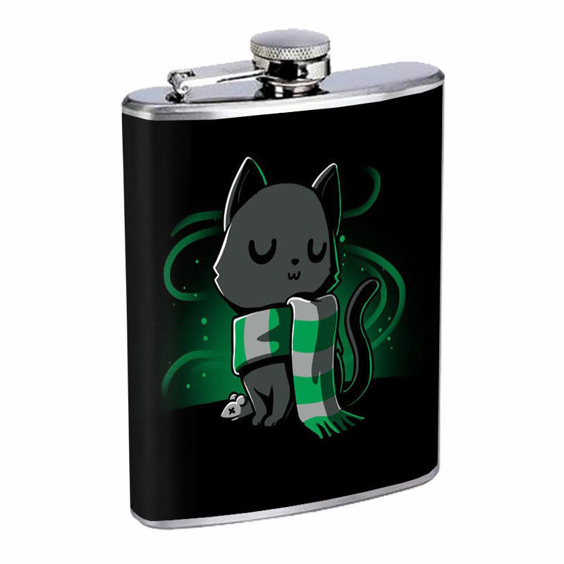 Green Magic House Cat Em1 Flask 8oz Stainless Steel Hip Drinking Whiskey