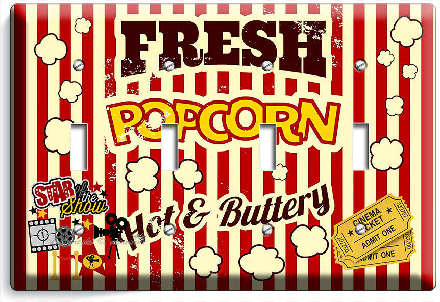 POP CORN TV ROOM HOME MOVIE THEATER CINEMA 4 GANG LIGHT SWITCH WALL PLATES DECOR