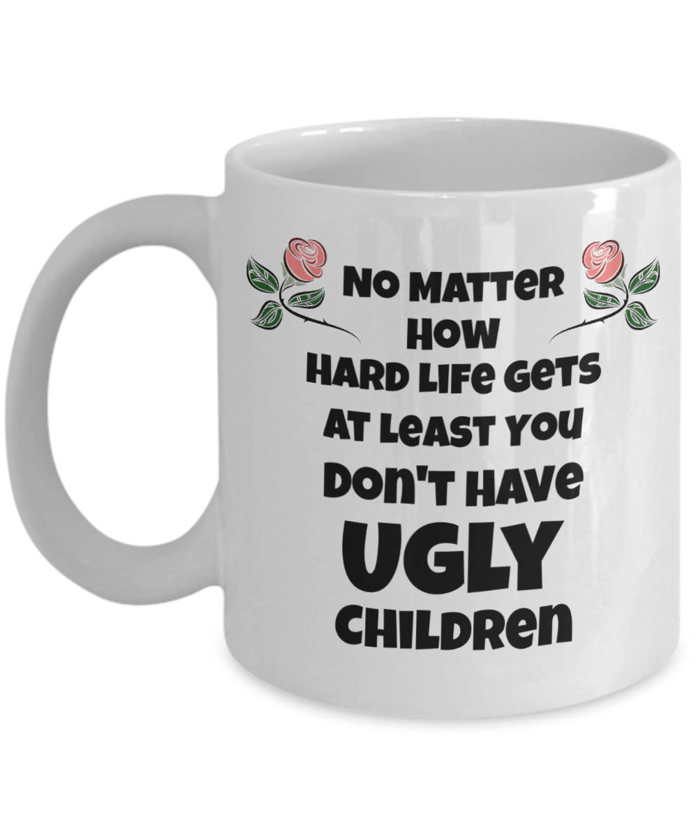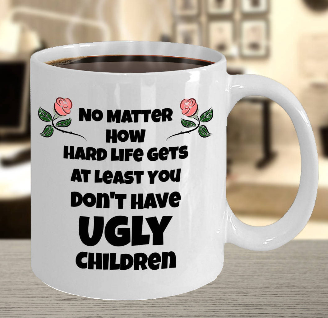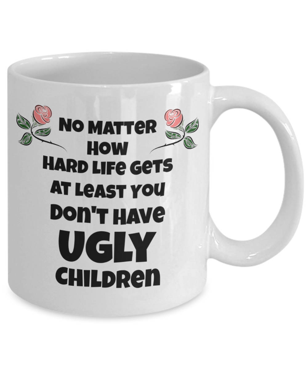 No Matter How Hard Life Gets At Least You Don't Have Ugly Children! Cute and funny gift for your mom, she'll love this unique mug and use it every day by thinking of you. Perfect gift for Mother's Day or Mom's birthday!