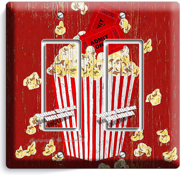 POP CORN TV ROOM HOME MOVIE THEATER RUSTIC 2 GANG GFCI LIGHT SWITCH PLATES DECOR