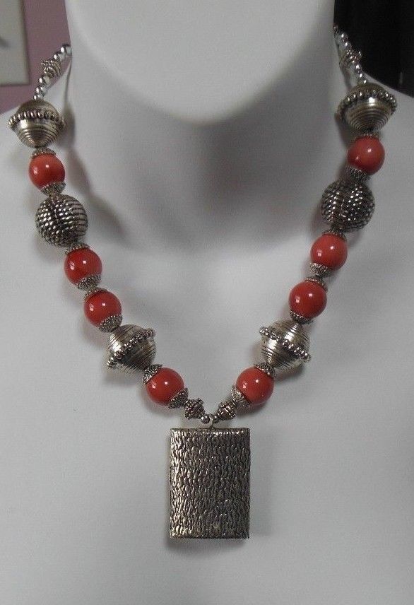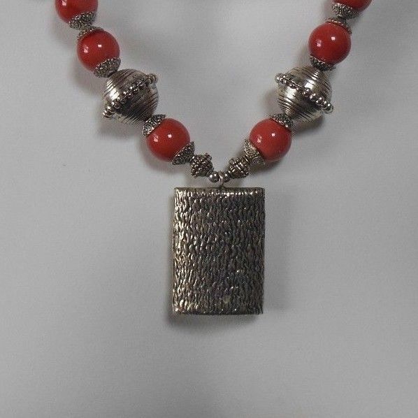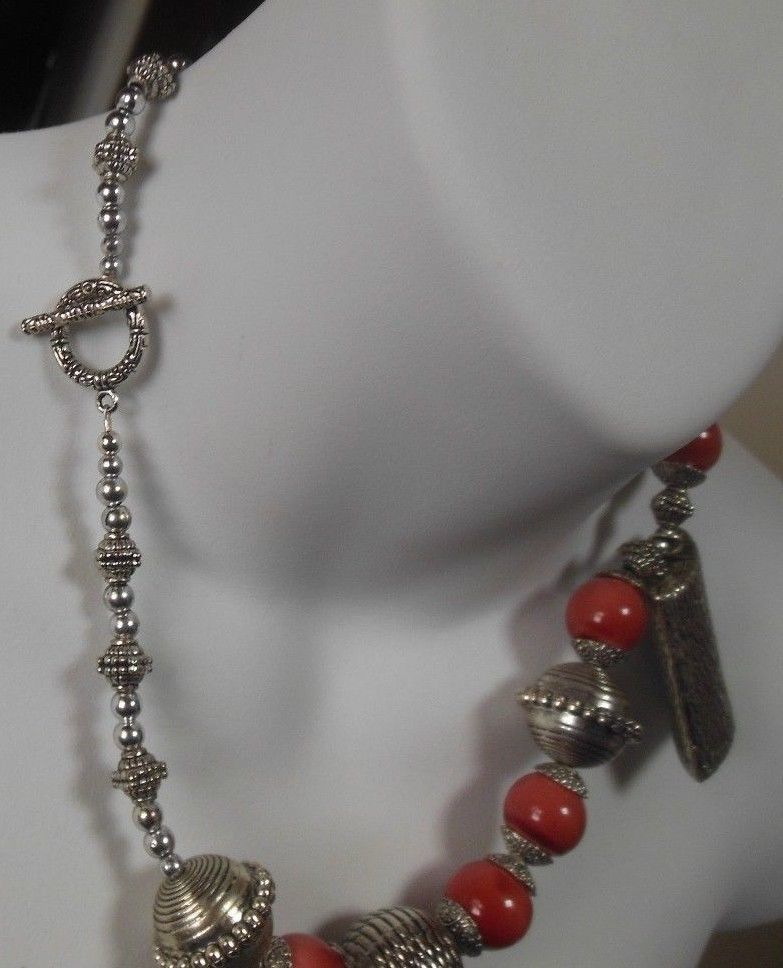 Silver-tone and Peach Colored Glass Bead Pendant Toggle Necklace