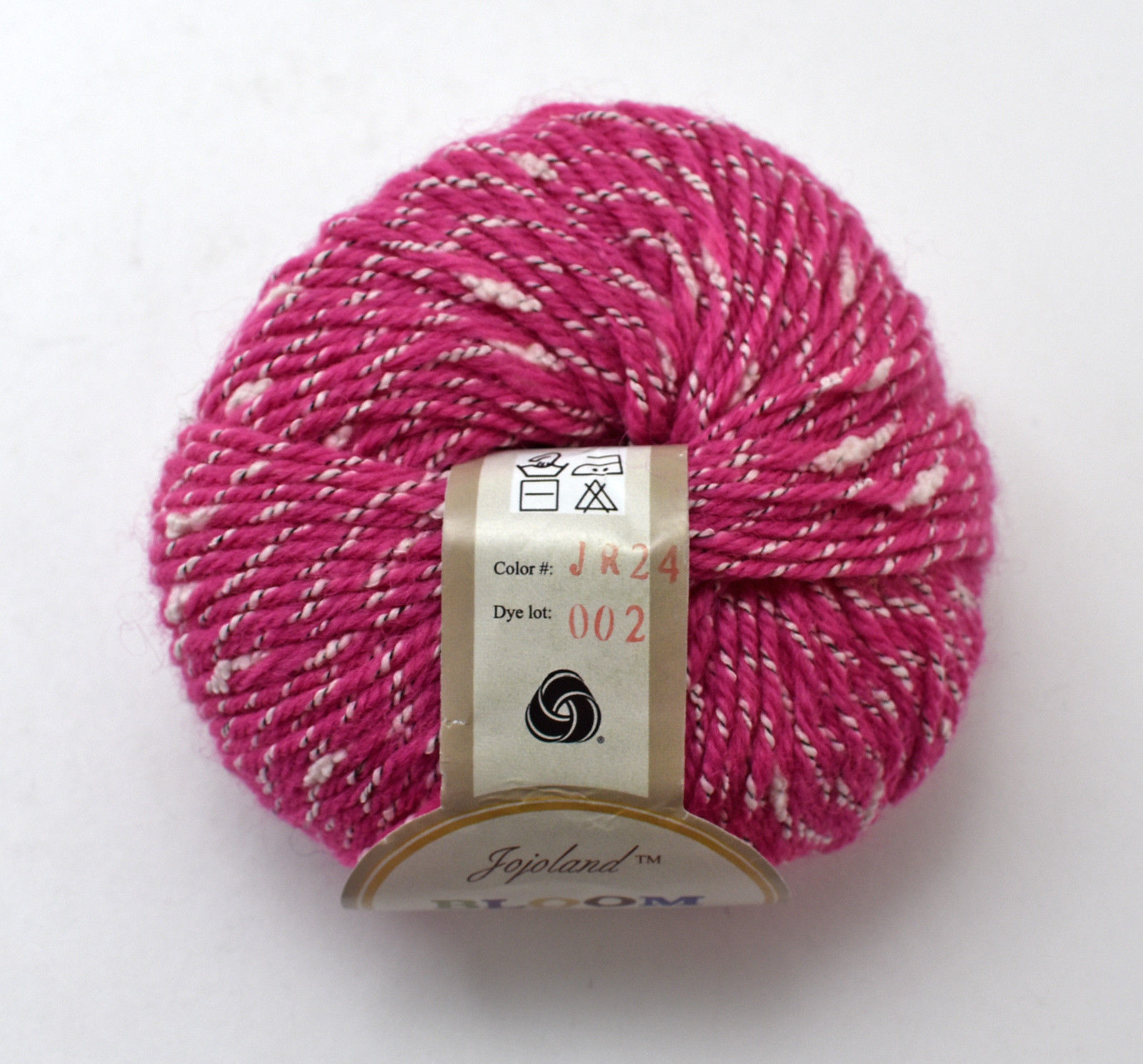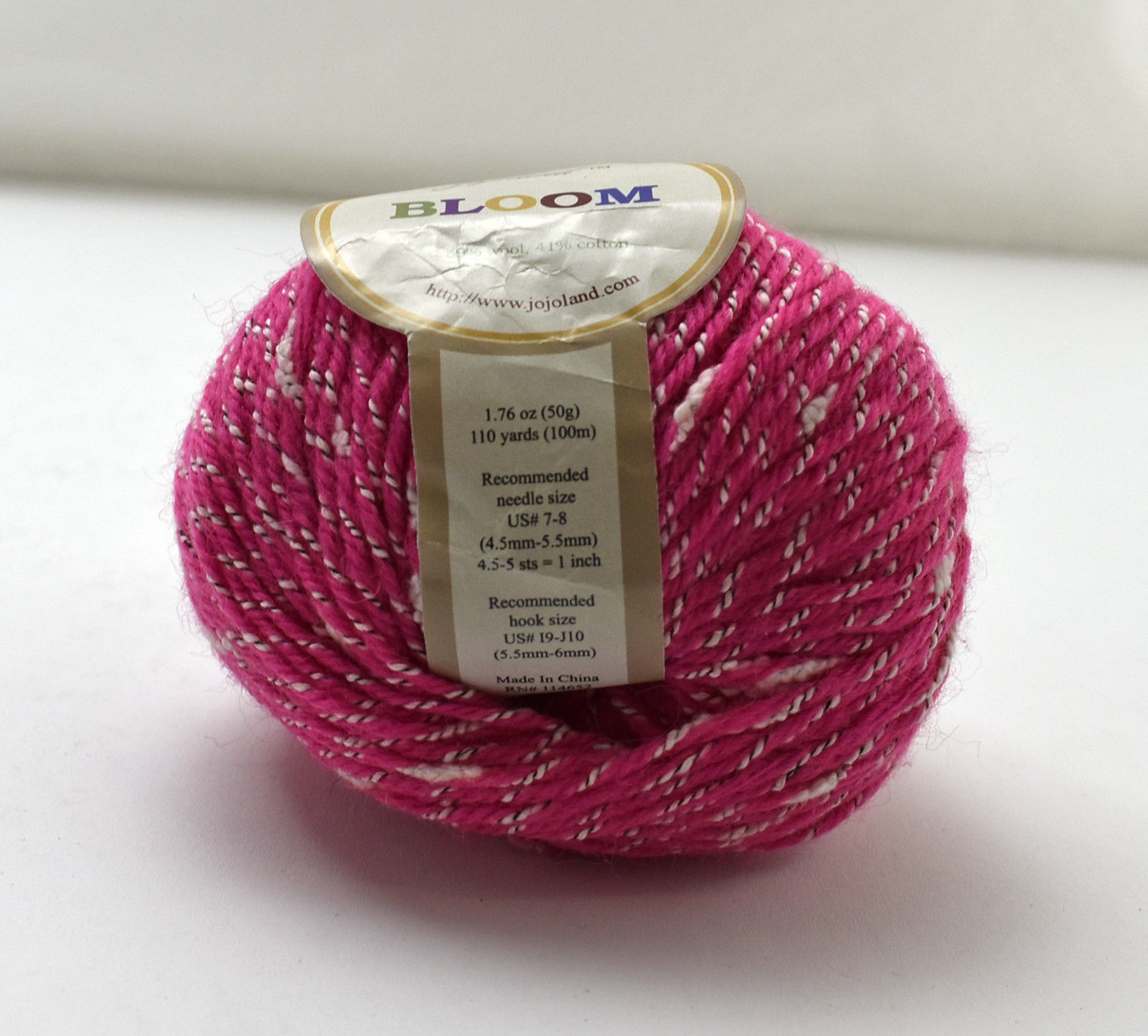 One ball/skein of Jojoland Bloom Yarn. Color Pink #JR24, Lot 002. 59% Wool, 41% Cotton; hand wash.