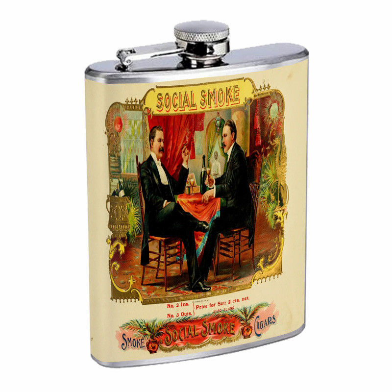 Vintage Cigar Box Poster D15 Flask 8oz Stainless Steel Hip Drinking Whiskey