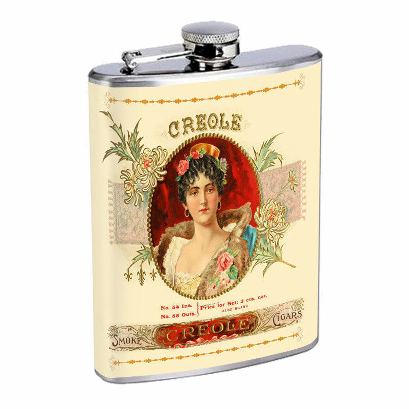 Vintage Cigar Box Poster D24 Flask 8oz Stainless Steel Hip Drinking Whiskey