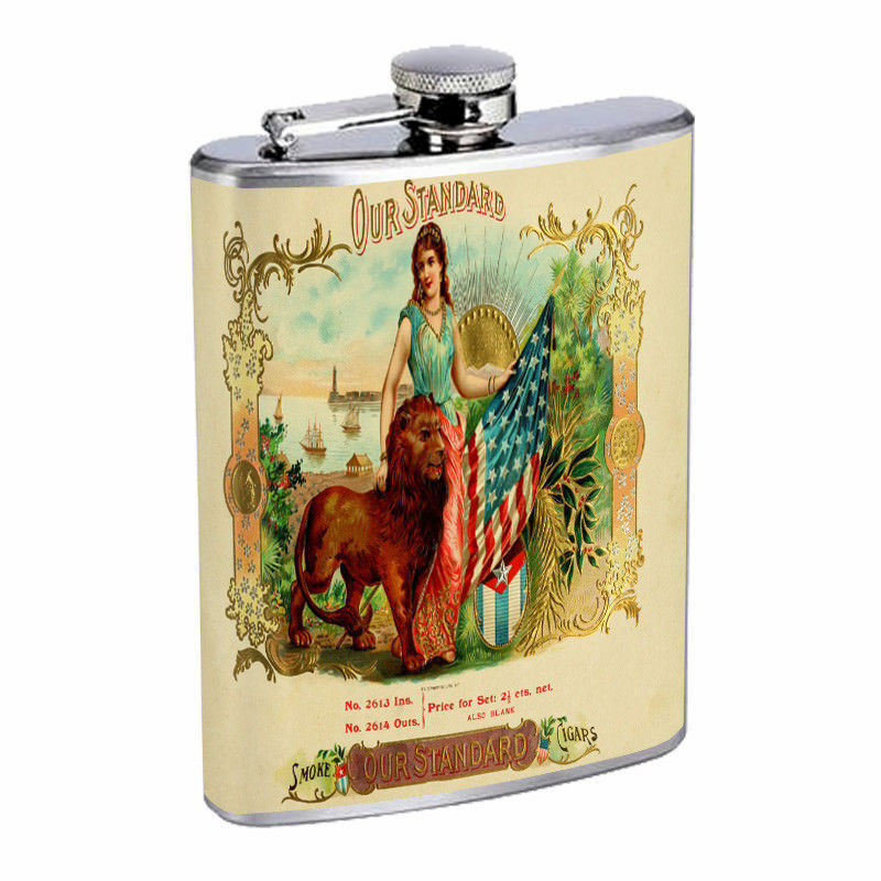 Vintage Cigar Box Poster D4 Flask 8oz Stainless Steel Hip Drinking Whiskey