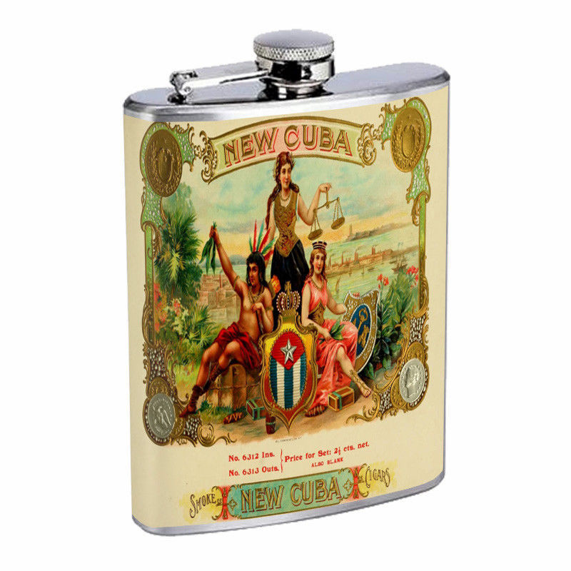 Vintage Cigar Box Poster D7 Flask 8oz Stainless Steel Hip Drinking Whiskey