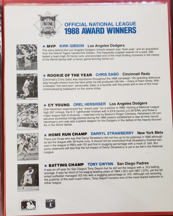 1988 National League Award Winners Photo Album. Major League Basebll.