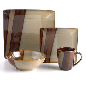 AVANTI BROWN EARTH TONE REACTIVE GLAZED DINNERWARE SET 16 PIECES SERVICE FOR 4