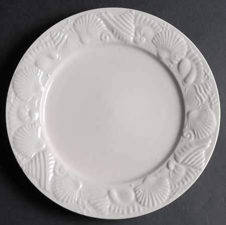 This Lido Beach SEASHELL DINNEPLATE will make dining a day at the beach! Each pure white, coupe-shaped stoneware piece brings a part of the beach to your table with an edge design of subtly raised seashells. Constructed of stoneware. Microwave and dishwasher safe. The dinner plate is perfect for your main meal, but also a handy plate for rolls or sandwich meats on a buffet. Dinner plate measures 10-1/2 inch diameter.