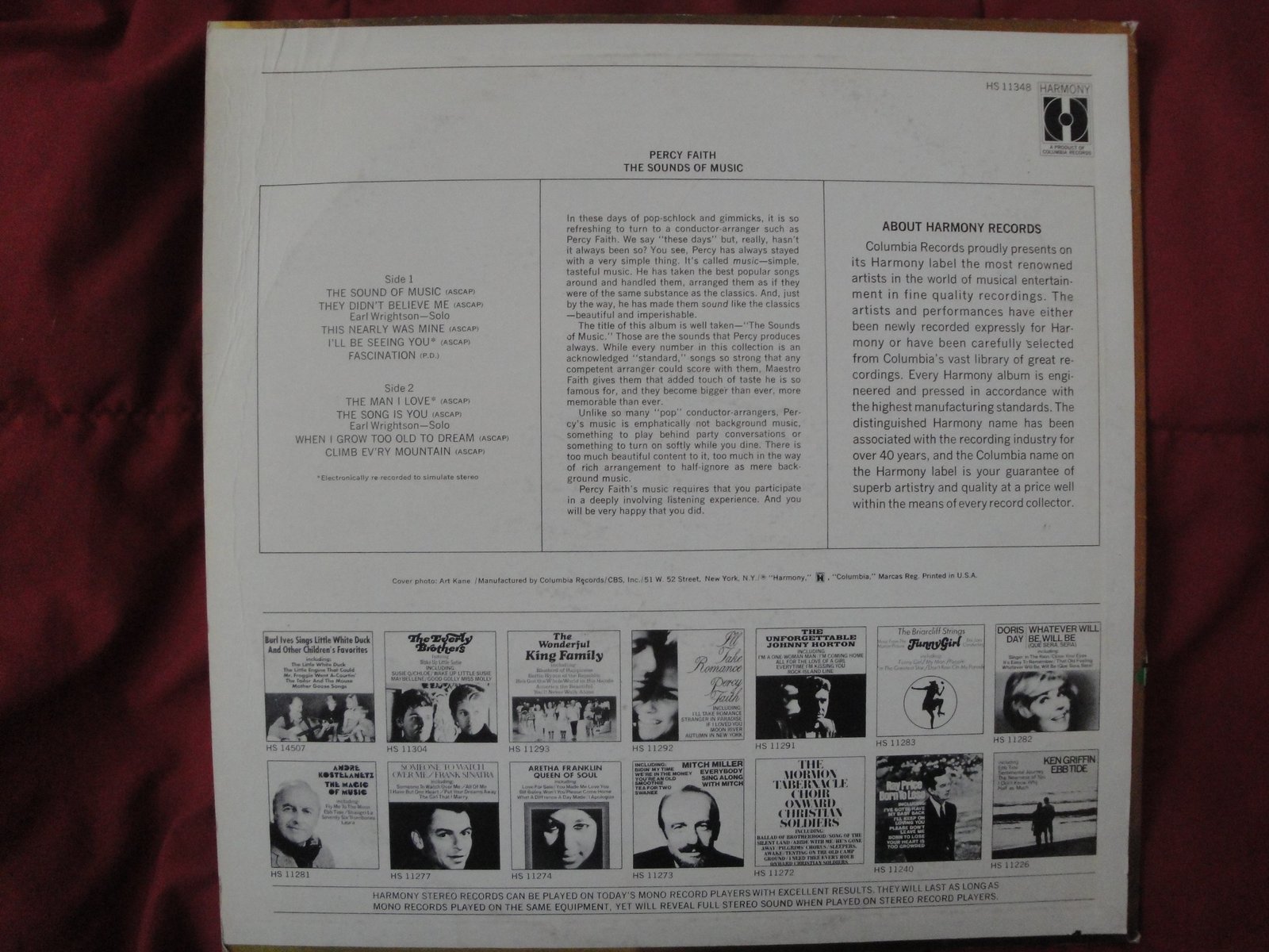 Percy Faith in The Sounds of Music Harmony Records HS 11348, Stereo Vinyl Lp Rec